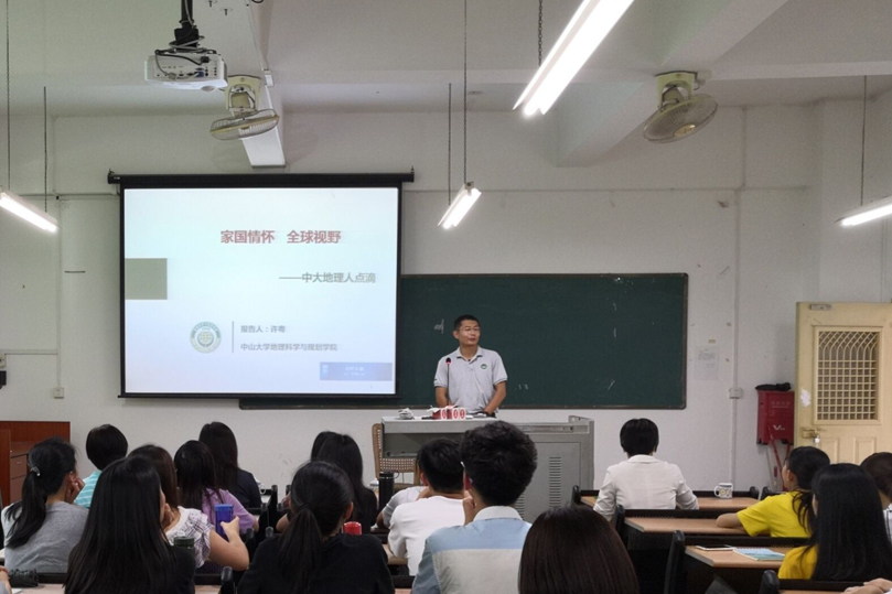 讲座以“家国情怀,全球视野——中大地理人点滴”为主题,许粤副书记用“法国里昂大学地质学硕士孙宕越”、“钻研于学术研究与传播的孙中山”、“爱国奋斗献身丹霞的彭华教授”等例子为我院学子生动阐述了地理人的家国情怀。并精练总结了作为地理人的“三要”即思想信念上要“不忘初心,与时俱进”、教育科研上要“刻苦攻关、成果卓著”、培养人才上要“守德启智,教书育人”。同时鼓励同学们脚踏实地,勇于担当,敢于创新,服务社会,报效祖国。