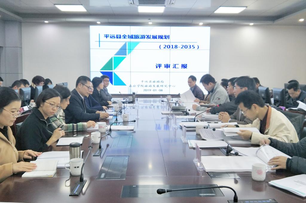 2019年1月8日,平远县人民政府在平远县主持召开了《平远县全域旅游发展规划(2018-2035)》专家评审会。来自华南理工大学、华南师范大学、梅州市旅游局、梅州市文化旅游特色区管委会、梅州市城市规划设计院的5位专家组成了评审专家组,平远县主要领导、县直各部门及各镇领导50多人参加了评审会。嘉应学院旅游发展研究中心团队承担的《规划》成果获得了评审专家和与会领导的高度评价,一致同意通过规划评审。
