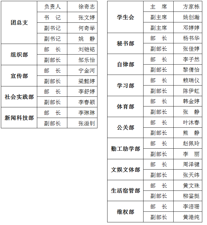 地理科学与旅游学院团总支、学生会第六届第一任委员代表大会目前已圆满结束,团学换届顺利完成,本着公开、公平、公正的原则,择优选拔任用,现将各职位任命情况公告如下: