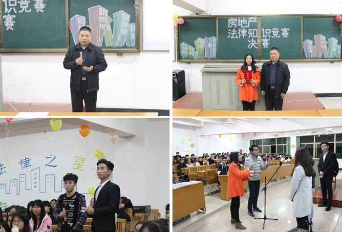 11月26日晚,我院2017年房地产法律知识竞赛决赛在工B206隆重举行。地理学院谢正锋老师,李英田老师,团总支第一书记徐奇志老师以及团学干部和班级代表近200人参加了此次活动。
