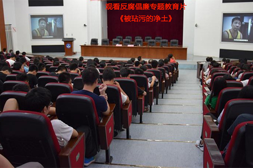 讲座结束后,全体师生还集中观看反腐倡廉专题教育片《被玷污的净土—广东省科技系统系列腐败案反思录》。