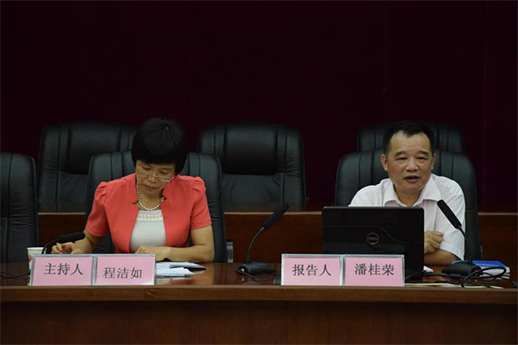 根据地理科学与旅游学院2017年纪律教育学习月活动方案,为学习贯彻好《保密法》,增强领导干部和广大教职工以及学生的保密纪律意识,9月13日下午,学院特邀请从事保密工作多年、具有丰富保密工作经验的梅州市保密局副局长潘桂荣在国际会议中心进行以《地理信息安全与保密教育》为题的保密专题讲座。地理学院党总支书记程洁如、院长俞万源、副院长郑春燕、全体教职工以及地理信息科学专业学生等250人参加了会议,讲座由程洁如书记主持。