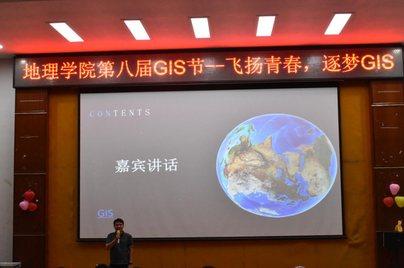 2019年9月19日晚,我院举办了以“飞扬青春,逐梦GIS”为主题的第八届GIS节暨迎新专业活动,本次活动得到了梅州市励图空间信息技术有限公司大力支持。我院院长郑春燕教授、系主任张鹏飞博士、实验室主任陈燕奎、新生班主任谢作轮博士等专业老师和辅导员,特邀嘉宾往届毕业生代表及在校GIS专业学生约230人参加本次活动。活动继承了院系优良传统,为新生科普了GIS相关知识,活动丰富,类型多样,搭建了校内外各年级学生、教师互动交流的平台,营造了GIS专业学习文化氛围。