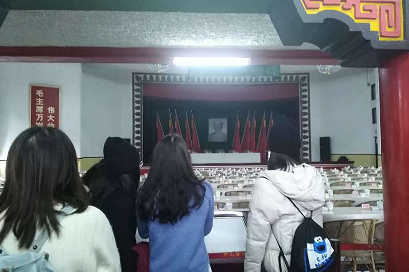 现场保存依然完好,踏进此地,整齐划一的桌椅和座位牌无不透露出一种肃穆庄重的气息,主席台正方悬挂着毛主席的画像,“伟大的中国共产党万岁”几字竖在右侧,红底白字,仿佛置身于那个风雨飘摇的年代......馆内详细的图文介绍和陈列的历史人物,不仅让同学们更加深刻地了解会议的相关历史背景和重要意义,而且让同学们更进一步感受到伟人先烈的满腔爱国热血,大家深受鼓舞,纷纷表示今后将更加努力学习,为中华民族崛起而奋力读书。