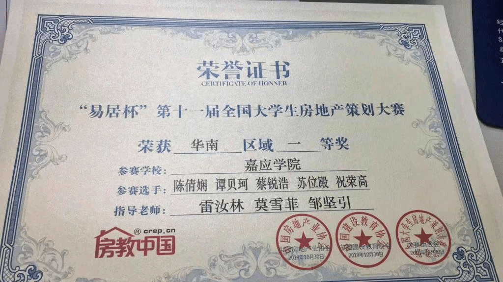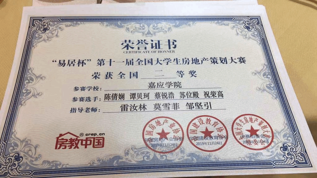 2019年11月23-24日,“易居杯”第十一届全国大学生房地产策划大赛在深圳大学举行,我校地理科学与旅游学院陈倩娴、谭贝珂、蔡锐浩、苏位殿、祝荣高五位同学组队参赛(指导老师:雷汝林、莫雪菲、邹坚引),喜获全国二等奖,华南赛区一等奖的好成绩,另,我校荣获2019全国房地产案例教学示范高校,为广东省唯一获此殊荣的高校。