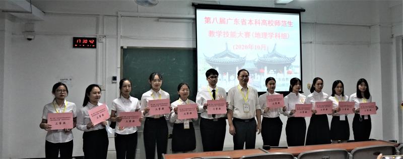 2020年10月17日我院学生参加第八届广东省本科高校师范省教学技能比赛,地理科学专业2017级的林艾佳、张福清、陈敏虹三位同学分别获得地理组三等奖。虽然新冠疫情影响,但我院师生克服种种困难,坚持不懈,对比赛做了精心准备。参加大赛,是一次与兄弟院校很好的交流机会,促进了我院师范生教学技能的进一步提升。