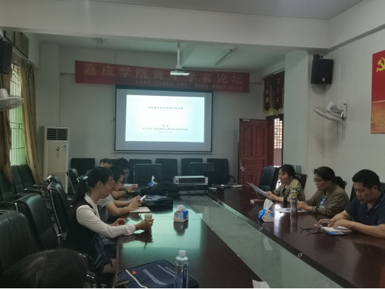 此次论坛由郑春燕院长主持,陈义彬书记、林培松副教授、谢正峰副教授担任评议员,参会的主要有我院学科骨干、青年学者、和对科研有浓厚兴趣的学生。论坛首期邀请了中山大学帮扶我院的陶贞教授和我院副教授欧先交博士为广大师生做报告。陶贞教授通过实际案例,详细地向大家讲解了国家自然基金申请书中摘要、关键科学问题、研究目标和特色与创新等主要环节的撰写要点和注意事项,为青年学者申报国家自然科学基金项目起到了关键的指引作用。欧先交博士则生动地向大家介绍了释光测年的原理,并举例说明释光测年技术在地质学、地貌学、考古学以及其它学科中应用的广大前景。