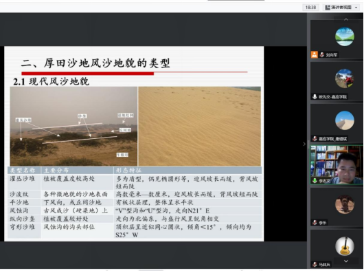 此次论坛邀请了佛山科技学院李志文副教授和南京大学李乐博士为广大师生做报告。李志文副教授的报告以“亚热带湿润区鄱阳湖沿岸风沙地貌的特征与形成机制”为主题,为大家介绍了鄱阳湖厚田沙地沙丘的形态参数、形成年龄以及形成机制。李志文副教授指出,鄱阳湖水位季节性涨落和出露的湖底提供了物质来源,湖周边的箕状地形强化了冬季风提供了动力条件,植被也起到了滞沙作用。李乐博士的报告以“铀同位素破碎年代学:原理、方法和新进展”为主题,首先介绍了铀同位素破碎年代学的理论模型和计算公式、样品前处理过程和测试方法。之后,李乐博士介绍了其所在的研究团队应用铀同位素破碎年代学在黄土高原物质来源和粉尘搬运过程研究中的应用、在青海民和喇家考古遗址黑沙层来源研究上的应用,以及在南方花岗岩风化壳侵蚀速率研究等方面的应用。