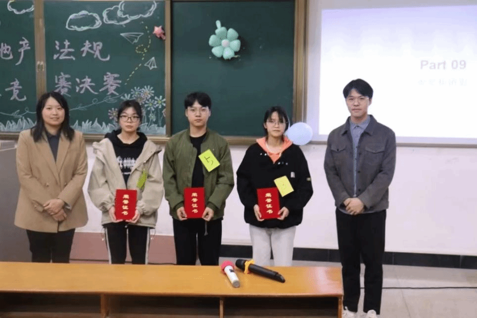 我院于2023年12月10日晚七点半在公颜实训大楼B206举办了房地产法规知识竞赛决赛。学院谢正峰副教授,张晓娟老师、温金耀老师担任此次大赛评委,各班级学生代表共近120人参加了此次活动。