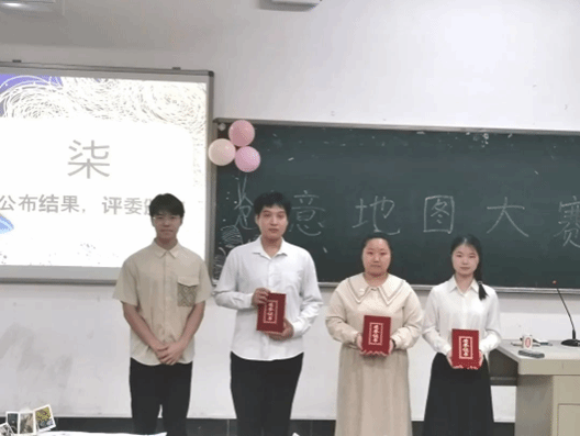2024年5月19日晚,我院在公颜实训大楼B303举办了创意地图大赛决赛。本次比赛邀请了朱明勇老师和陈燕奎老师担任评委,辅导员温金耀老师、山水行知社社员及各班代表应邀参与了此次活动。