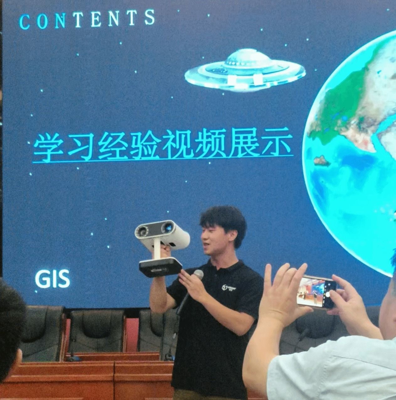 随着新学期的开始,一群对GIS充满好奇与热情的新生即将踏入这片充满机遇与挑战的领域。本次GIS节旨在让新生更好地了解GIS专业的内涵与价值,感受专业文化的深厚底蕴,同时促进新老生之间的交流与传承。活动开始前。马林兵院长在致辞中谈到了本院地理信息科学专业的历程,强调要专注学科学习、专业学习,努力提升专业技能。通过视频展示,毕业的优秀师兄师姐们分享了他们的学习经验、对学校老师的感谢和对师弟师妹们的期望,给师弟师妹树立了榜样。2203班同学们带来的《我们一起看遍中国》,;2304班的陆程同学带来的歌曲演唱《开不了口》;2305班同学吴静怡带来的舞蹈,都在展现着学生们的多才多艺,活跃了现场的气氛。GIS实验室环节通过仪器展示和仪器展示,让学生们近距离感受GIS技术的魅力,并宣传了GIS实验室,让新生更加深入地了解了GIS实验室。一系列精彩的节目表演和游戏环节,如“你比划我猜”等,不仅增加了活动的趣味性,也加深了学生对专业知识的理解。活动最后,付翰泽老师进行了总结讲话,主持人致闭幕词,晚会落幕。