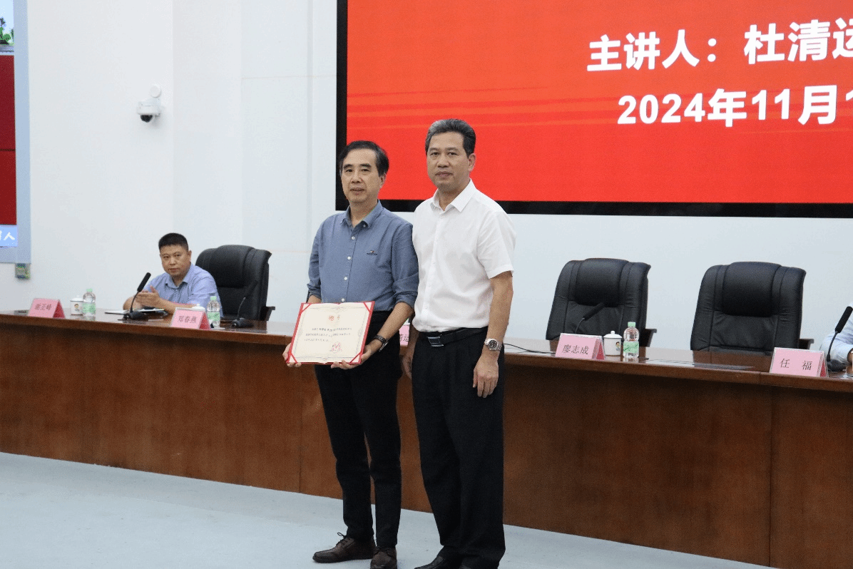 聘任仪式上,廖志成副校长对杜清运教授的到来表示欢迎,并为杜教授颁发了聘书。他还表示,杜清运教授的到来将为嘉应学院的学科发展、申硕工作、队伍建设、人才培养等各项办学事业带来巨大的推动力。据悉,杜清运教授早在2015年就被嘉应学院聘为荣誉教授,作为国家“万人计划”教学名师,长期从事数字制图与地理信息系统研究工作,主持国家重点研发计划、国家863、国家自然科学基金等项目,获得国家奖3项、省部级奖20余项,发表国际期刊学术论文70余篇。此外,杜教授还担任国际制图协会(ICA)高精地图学委员会主席及中国地理信息产业协会地图工作委员会主任委员。