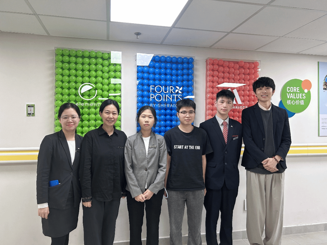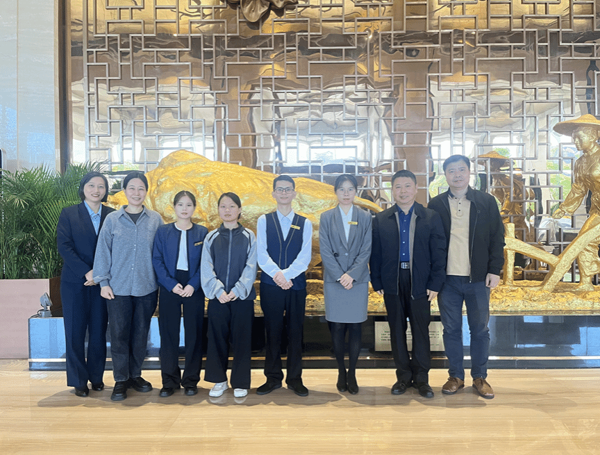 本次实习检查分两组进行,一组由谢正峰和马林兵两位副院长带队于11月22日走访了梅州昌盛豪生大酒店及梅州白天鹅迎宾馆。学生们分享了自己的工作内容,工作中能力的提升以及挑战。两位院长肯定了同学们的实习所得,并鼓励实习生从专业的角度发现问题思考问题并解决问题。