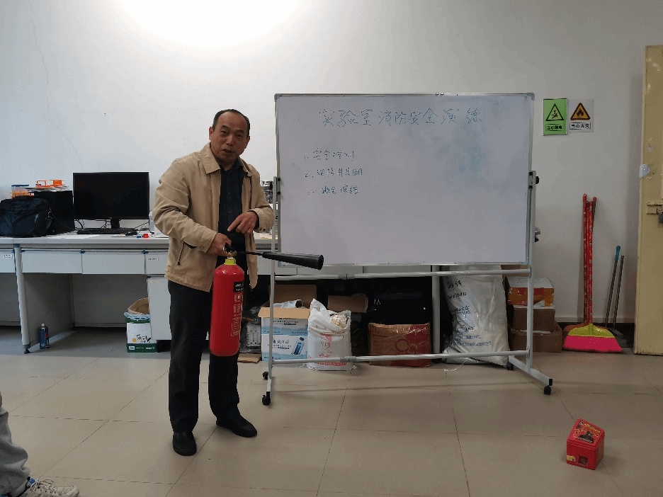 第一环节是实验室安全应急演练。演练开始前,林培松副院长对消防安全和危险品应急处理知识讲解,演练注意事项给予说明,并对室内消防灭火器的使用进行了演示;随后开展了应急撤离演练,所有参与培训的人员听从各自楼层和区域负责人的明确指示,遵循“就近出口、有序疏散”的原则,迅速有序地从各疏散通道和安全出口撤离。