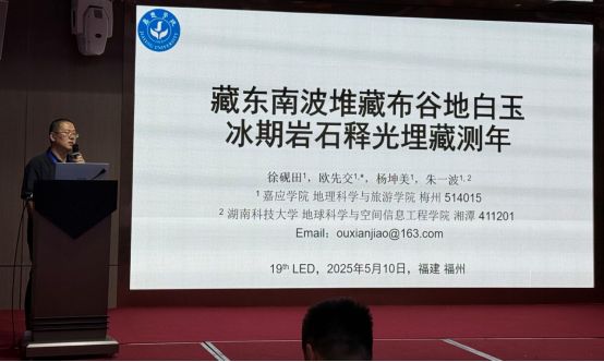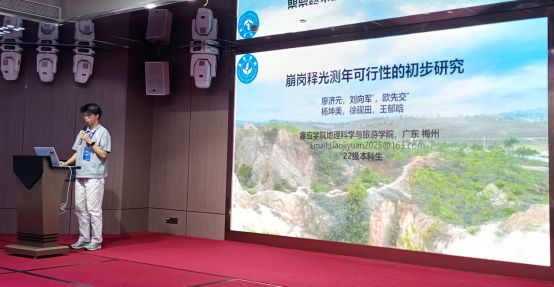 我院地貌演化与释光测年团队在欧先交教授带领下组织了7名师生参会,共作了3个口头报告和3个展板报告,充分展示了我院在释光测年与地貌环境研究领域的最新成果。徐砚田博士作了题为《藏东南波堆藏布谷地白玉冰期岩石释光埋藏测年》的口头报告,联培研究生王郁晗、本科生廖济元分别以《全新世青藏高原西部亚克米错湖泊水位变化及其古气候意义》、《梅州市崩岗释光测年及其演化的驱动机制探析》为题作了报告。杨坤美老师和两位本科生(常嘉怡、李榕)分别展示了题为《岩石释光埋藏测年:原理、方法与应用》、《广东畲江红土释光测年可行性研究》、《中国黄土高原粉尘的改造与再分布:基于光释光测年、铀系破碎年龄和释光灵敏度分析》的展板报告。