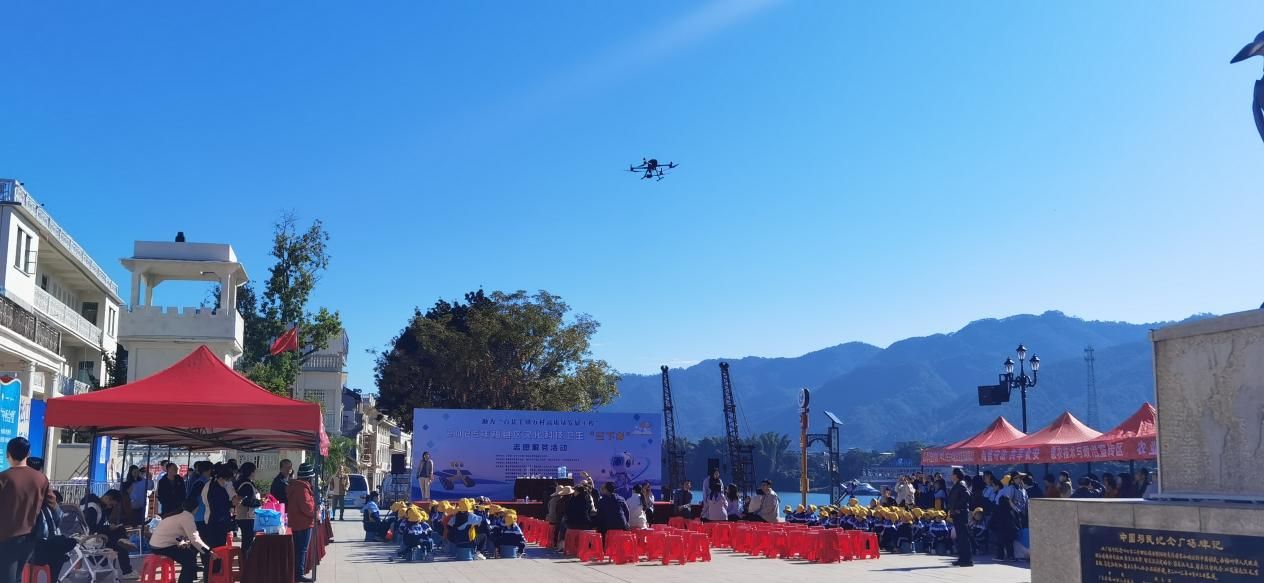 为进一步丰富基层乡镇和学校的科普活动内容,有效促进基层群众和学生的科学素养持续提升,11月21日,2025年梅县区文化科技卫生“三下乡”科普志愿服务活动在梅县区松口镇移民广场顺利举办。受主办单位梅县区科学技术协会、梅县区松口镇人民政府、梅县区教育局及共青团梅县区委员会的邀请,我院马小洪老师带领无人机团队积极响应,精心准备了航测航拍、农业遥感、农业植保等三套先进的无人机设备,全程参与此次科普志愿服务。