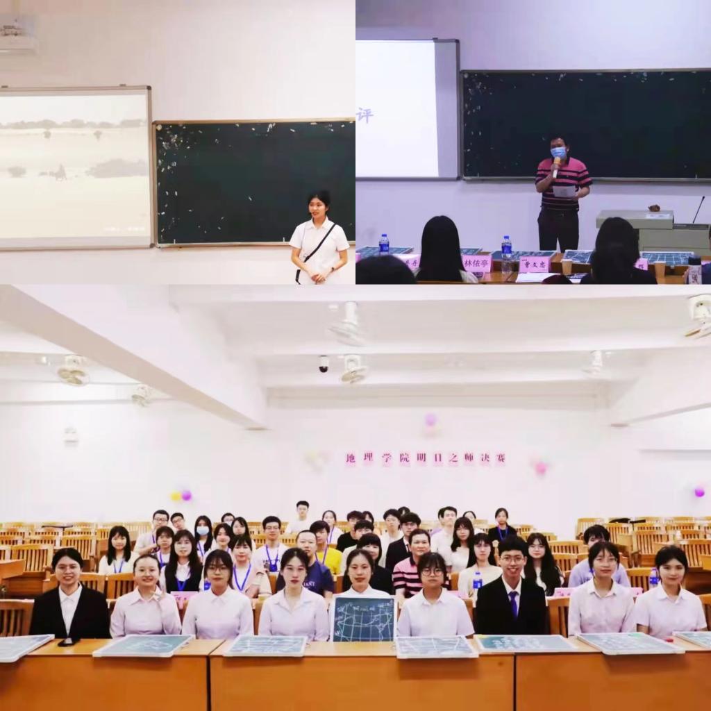 4月23日晚,我院在公颜实训大楼B303举办了“明日之师”模拟课堂地理师范生教学技能大赛决赛。本次大赛邀请了梅县东山中学曾文忠老师、黄丽辉老师担任评委,还邀请了辅导员曹灵博老师、山水行知社理事团、团学主要学生干部为特邀嘉宾,师生近150余人参加了本次比赛。