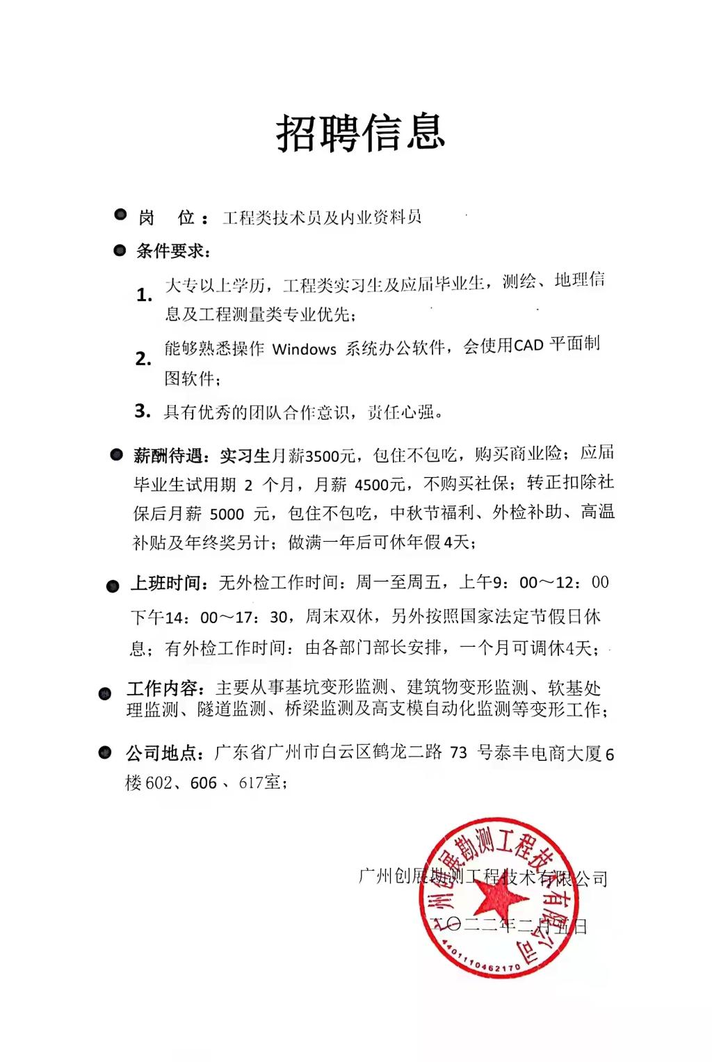 2022年广州创展勘测工程技术有限公司招聘信息