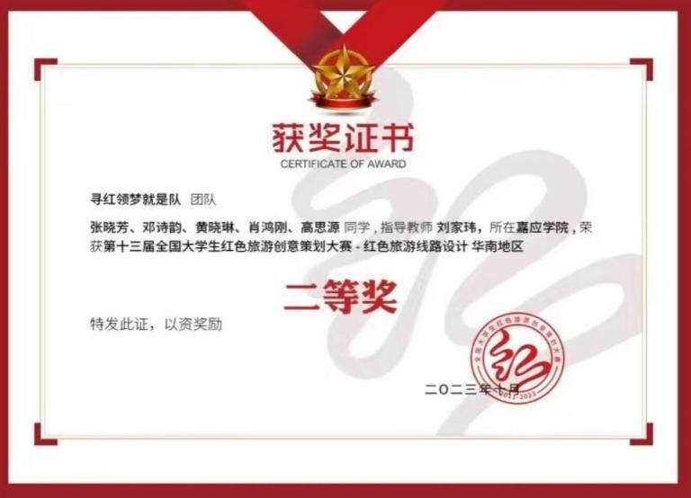 全国大学生红色旅游创意策划大赛 | 国家级 | 二等奖 | 刘家玮 | 2023年 |