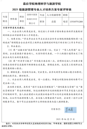 本专业每学期都开展了课堂教学评价和期中教学座谈会,也会定期请毕业校友的雇主评价本专业毕业生工作情况,并根据评价结果对人才培养方案进行修改完善。每年邀请和拜访旅游管理行业专家、学者等,通过系统调研和专题研讨,动态优化人才培养方案,确保专业建设与行业发展同步。