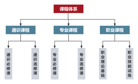 本专业课程体系由通识课程、专业课程和职业课程构成。