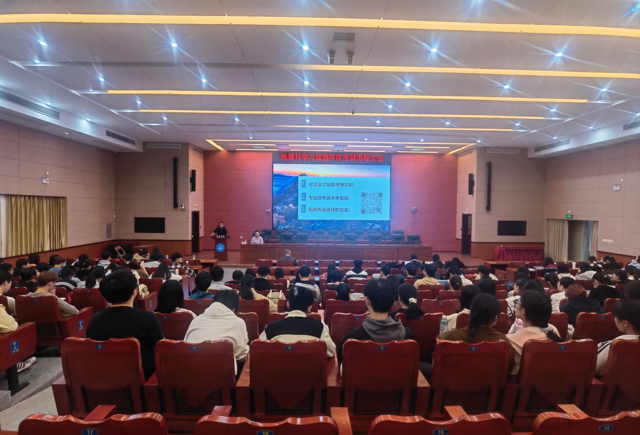 为切实加强对我院学生的考研指导,营造良好的考研氛围,提升学院考研率,我院于12月10日在百年纪念大楼121室举办了考研指导大会,大会邀请了文道考研孙娇娇老师作为主讲人。学院青年教师辅导员(负责考研工作)谢作轮博士、旅游管理系王辉教授、学工办负责人曹灵博老师及各班学生200余人参加了本次指导会。
