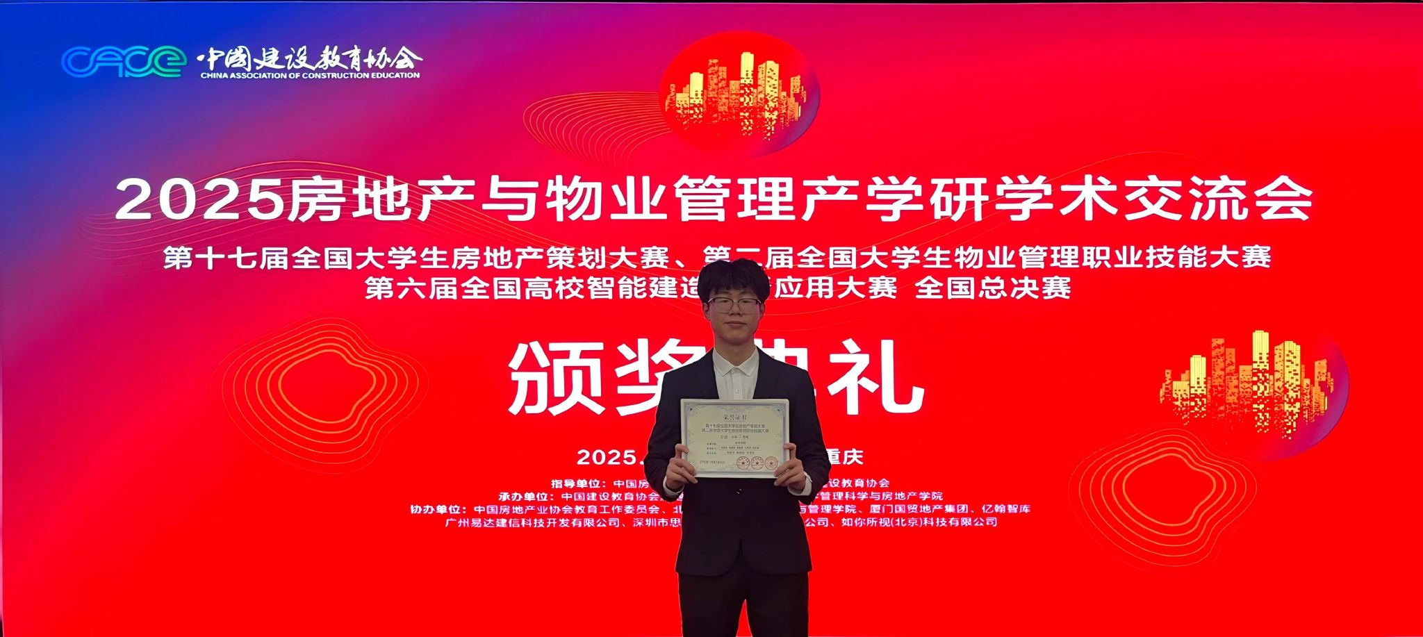 近日,2025房地产与物业管理产学研创新论坛暨第十七届全国大学生房地产策划大赛全国总决赛在重庆大学圆满落幕。我院房地产开发管理专业两支参赛队伍凭借扎实的专业功底、创新的策划方案和出色的现场表现脱颖而出,分别斩获二等奖和三等奖,为学校赢得了荣誉。