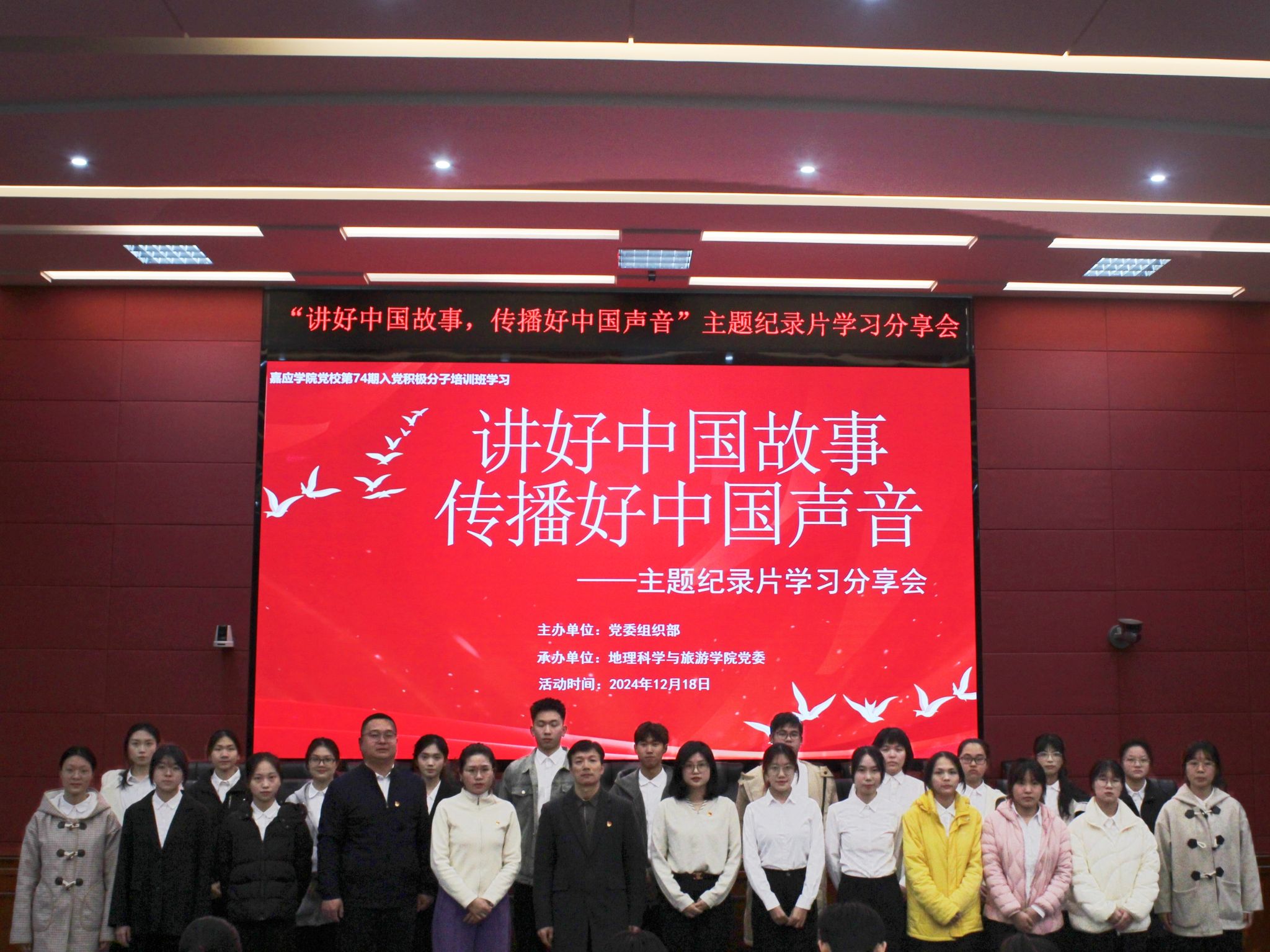 为深入学习贯彻习近平文化思想,教育引导青年学生厚植爱国主义情怀,12月18日下午,由我院承办的“讲好中国故事,传播好中国声音”主题纪录片学习分享会在文科楼121室成功举办。学校党委组织部、地理科学与旅游学院相关教师和第74期入党积极分子培训班学员参加了活动。