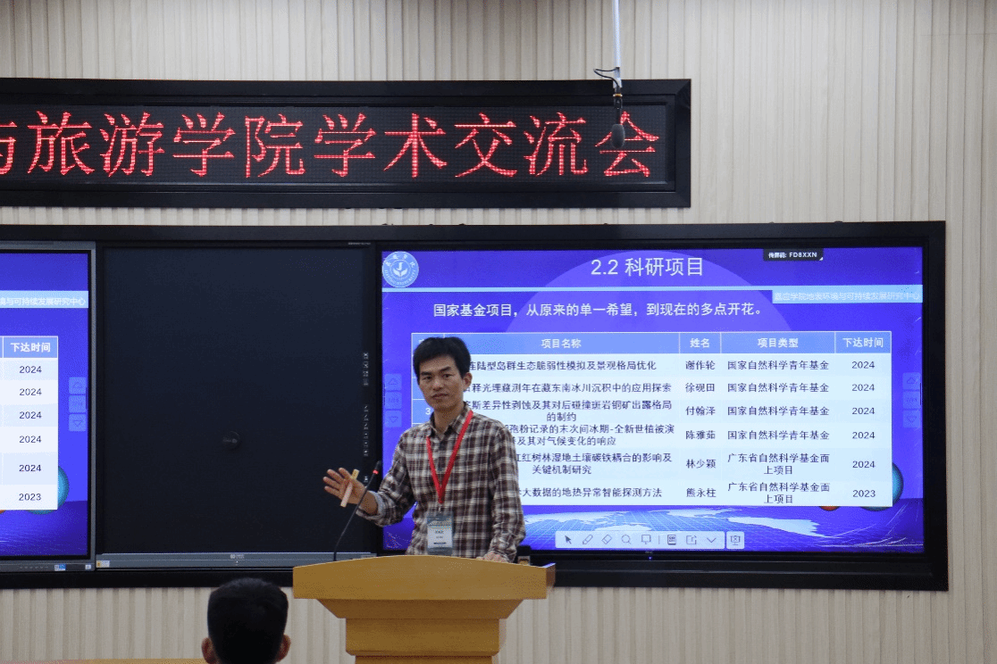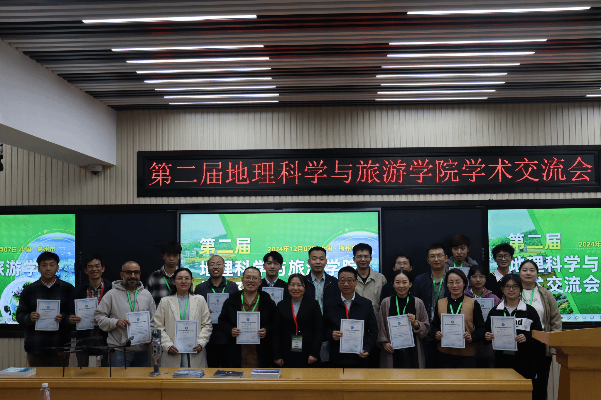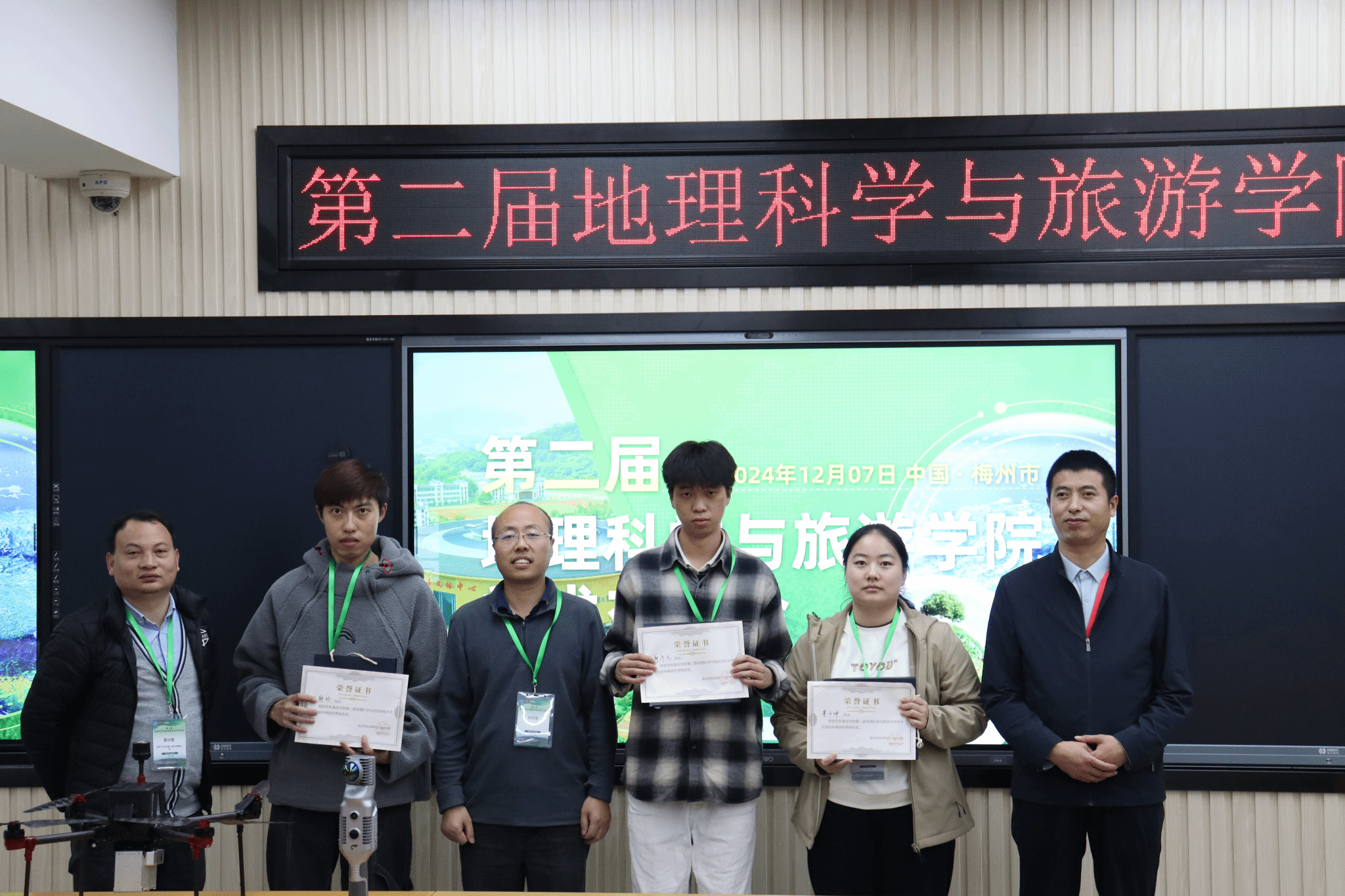 会议伊始,郑春燕院长做了致辞,表示本次学术交流会致力于活跃地理科学与旅游学院学术氛围,促进学院教师互相了解各自专业背景和研究方向,为青年教师的成长搭建一个坚实的平台。随后,欧先交教授对“嘉应学院地表环境与可持续发展研究中心”的最新进展做了汇报,刘向军教授对“嘉应学院无人机遥感校企联合实验室”的最新进展做了汇报,深圳飞马机器人有限公司华南大区李纯南经理对“飞马无人机”进行了介绍。学术交流会共有18个学术报告,包括11个教师报告,4个研究生报告,3个本科生报告。其中,我院青年教师徐砚田、陈雅茹、黄雅君、林少颖、杨坤美、付翰泽、Mahmoud莫昊天等报告人依次汇报了其团队的最新研究成果和进展。此外,本次学术交流会还特别邀请了甘肃省镇原县博物馆王博文研究员、刘辉老师,我院2010级GIS校友、广州大学阮永俭老师和广州番禺职业技术学院曾帅老师分别做了报告与交流。经组委会和特邀嘉宾的评定,我院徐砚田老师、林少颖老师、付翰泽老师的报告被评为优秀教师报告,王郁晗同学、杲云坤同学、廖济元同学被评为优秀学生报告,并颁发了荣誉证书和奖品。